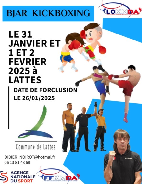 Bonjour à toutes et à tous Une formation de juge arbitre Kick Boxing à la Lattes est en place pour vos jeunes ! Nous vous mettons des formateurs de choix spécialement pour vous ! La ligue LOKMDA nouvelle génération 2024 met en place plusieurs formations et des passages de Grades restez attentif pour ne rien rater ! Sportivement. Passez une belle fin d'année. Sportivement Gouna Luc Dossier...