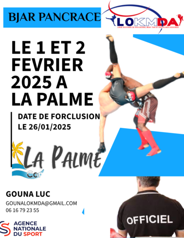 Bonjour à toutes et à tous Une formation de juge arbitre Pancrace à la Palme est en place pour vos jeunes ! Nous vous mettons des formateurs de choix spécialement pour vous ! La ligue LOKMDA nouvelle génération 2024 met en place plusieurs formations et des passages de Grades restez attentif pour ne rien rater ! Sportivement. Passez une belle fin d'année. Sportivement Gouna Luc Dossier...